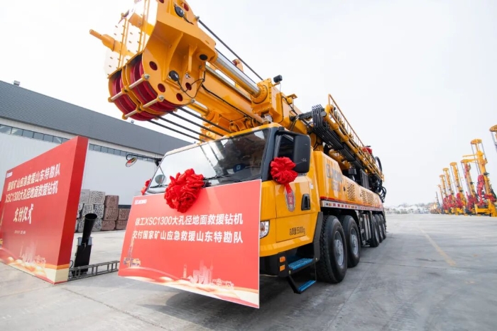 2024年,徐工XSL1000深井钻机作为比武装备,全程参与首次全国规模的矿山钻探应急救援赛事;同年,徐工XSC1300大孔径地面救援钻机交付国家矿山应急救援山东特勘队,深度参与国家矿山应急救援,徐工在矿山应急救援领域的每一步,都走得坚定而扎实。